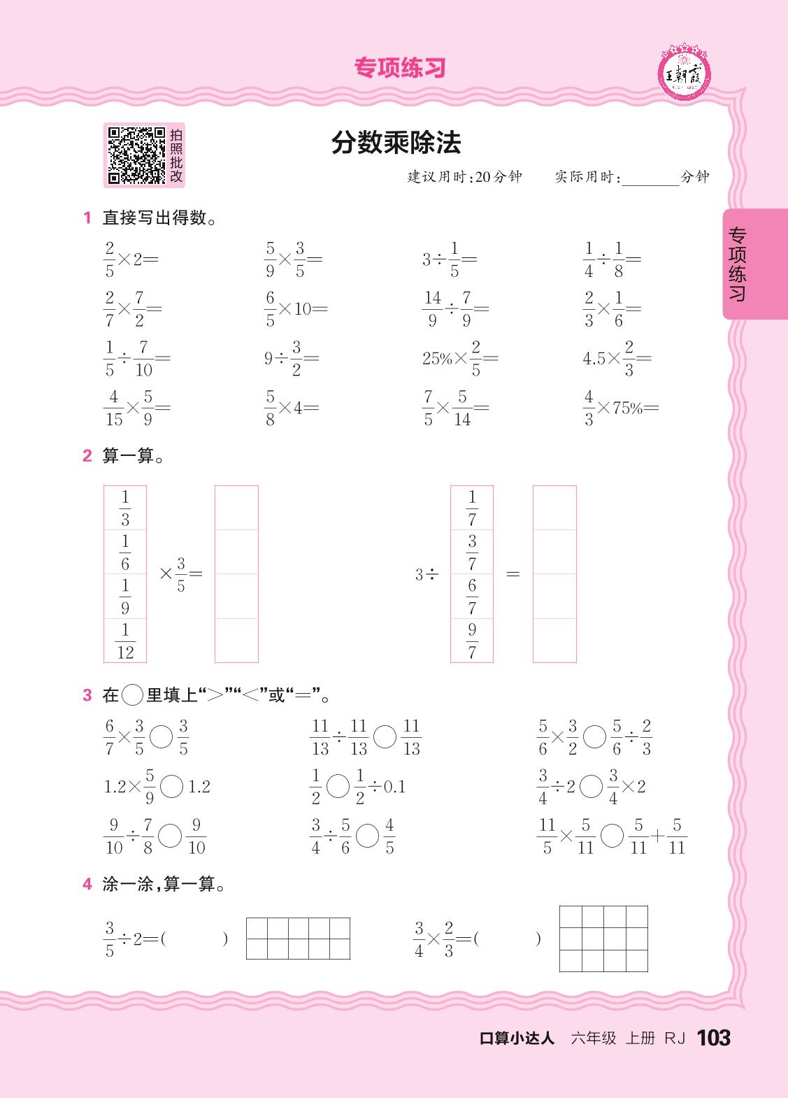 2024秋上册六年级数学人教版 口算计算专练 专项练习