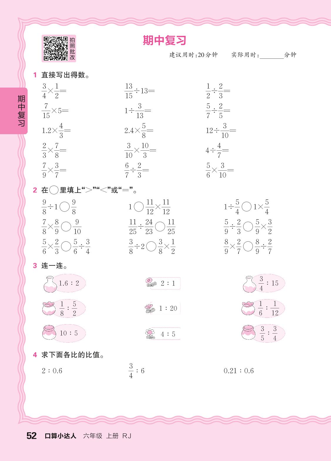 2024秋上册六年级数学人教版 期中复习(计算专练)