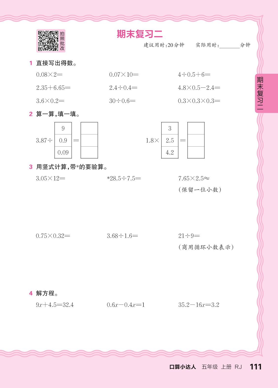 2024秋上册五年级数学人教版 期末复习二(计算专练)