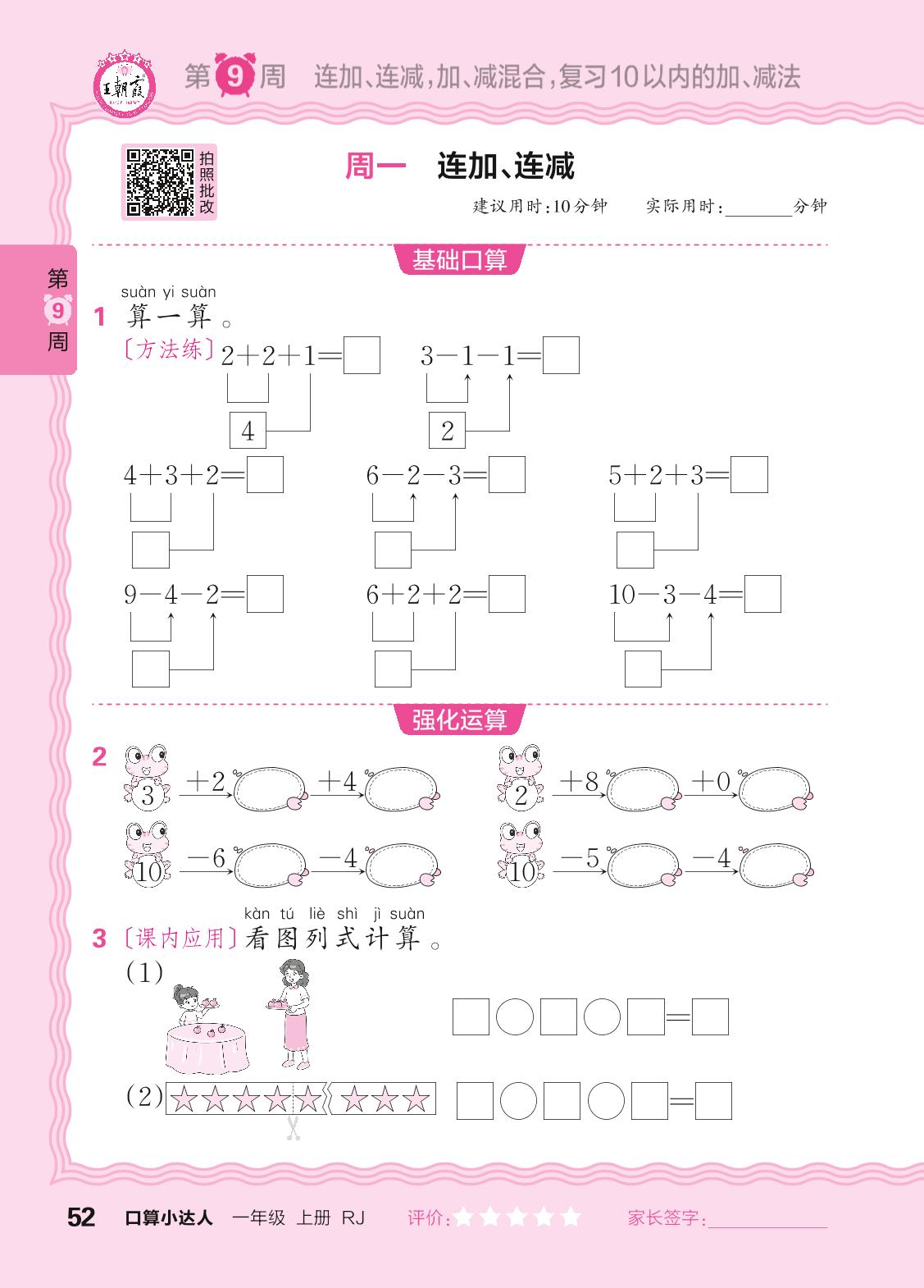 2024秋上册一年级数学人教版 口算计算专练 第9周