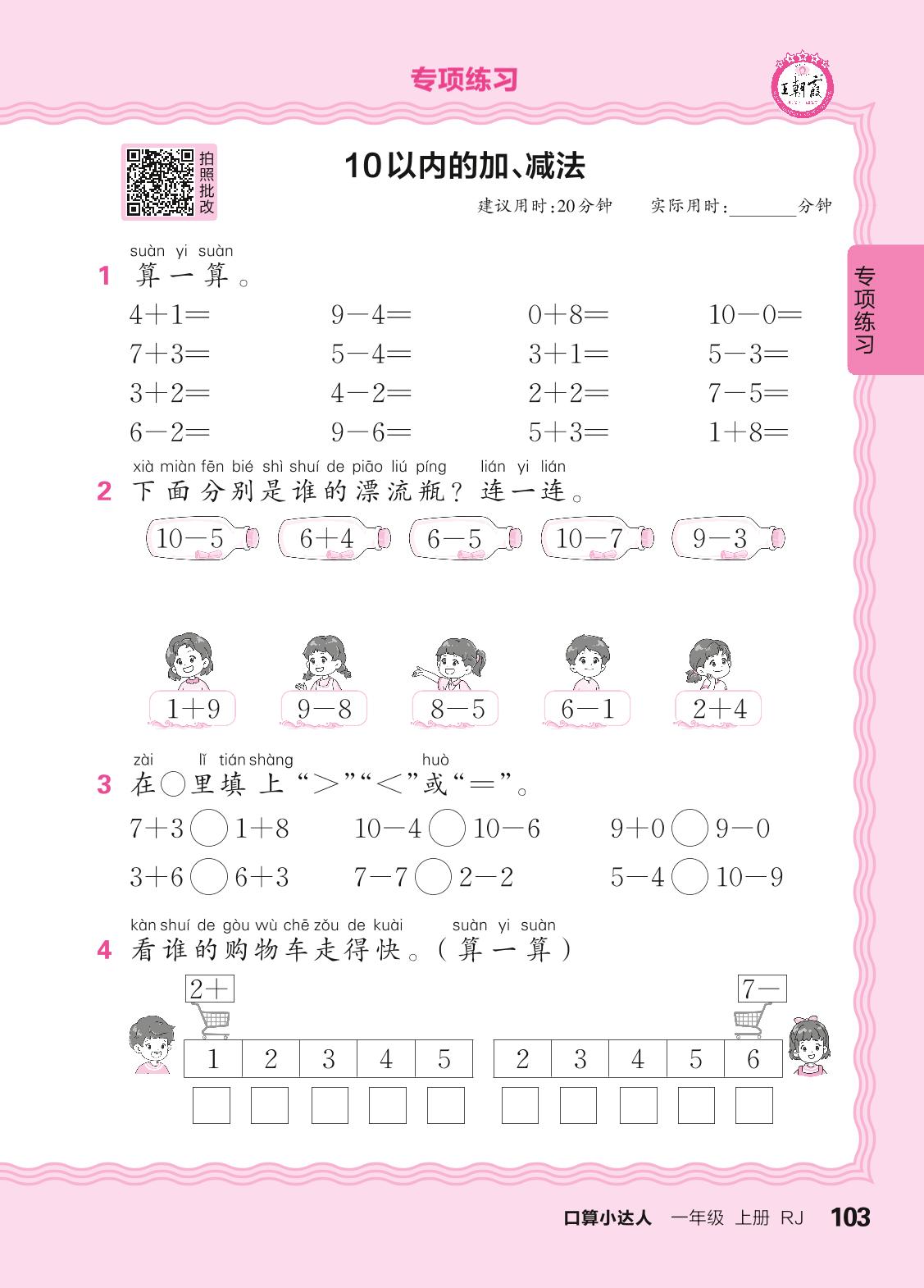 2024秋上册一年级数学人教版 口算计算专练 专项练习