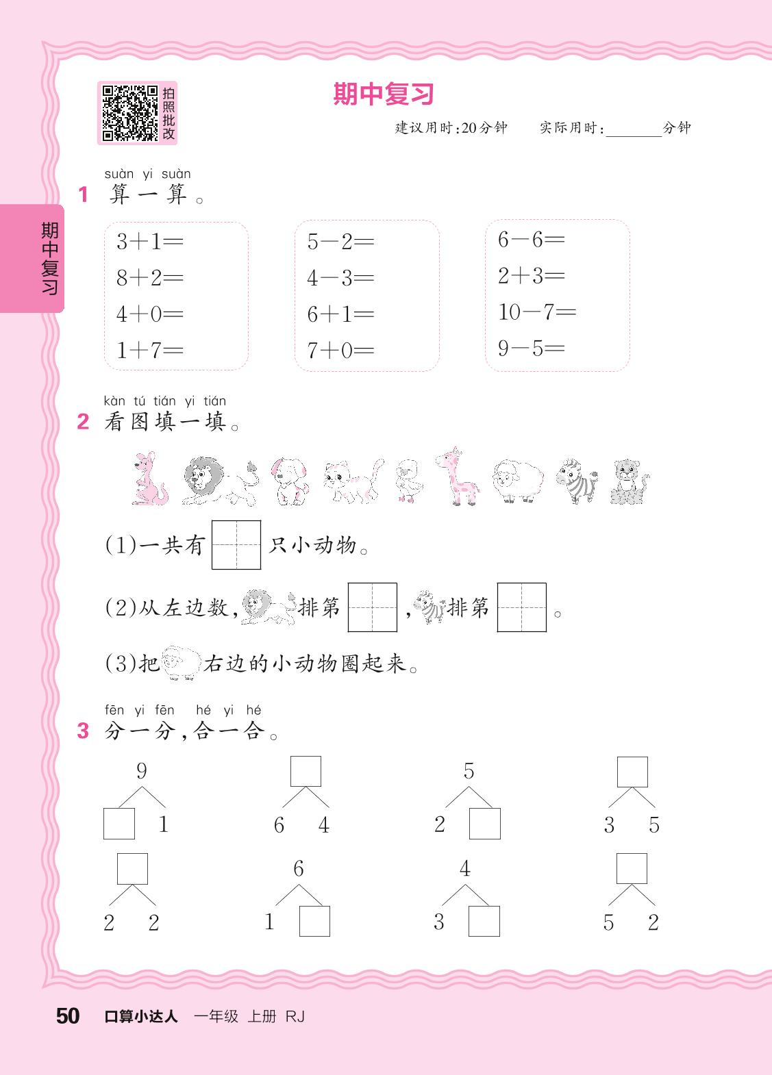 2024秋上册一年级数学人教版 期中复习(计算专练)