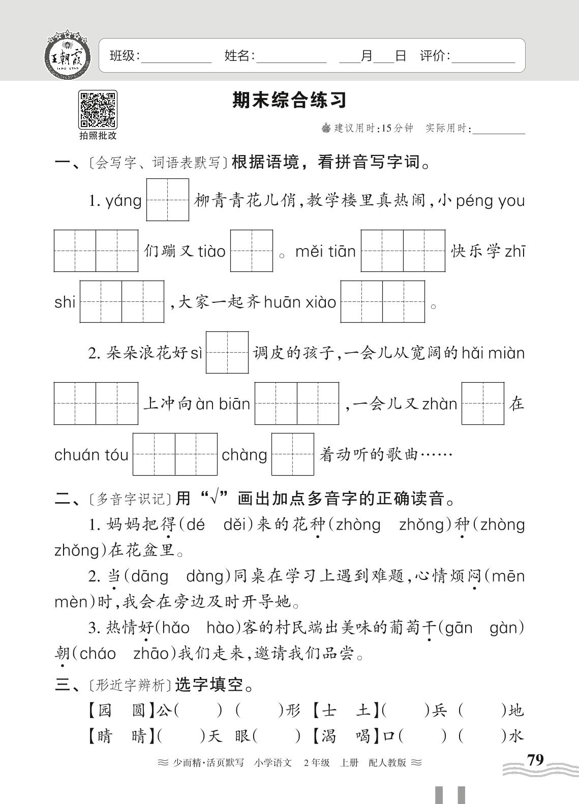 二年级语文人教版上册专项卷