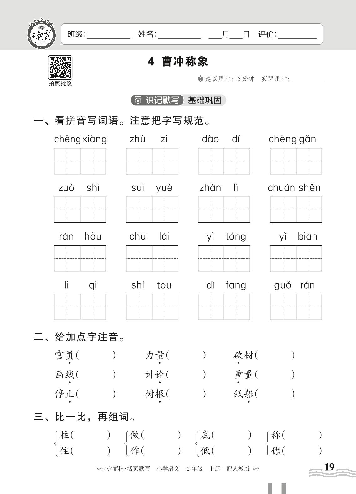 2024秋上册二年级语文人教版 第三单元——4. 曹冲称象