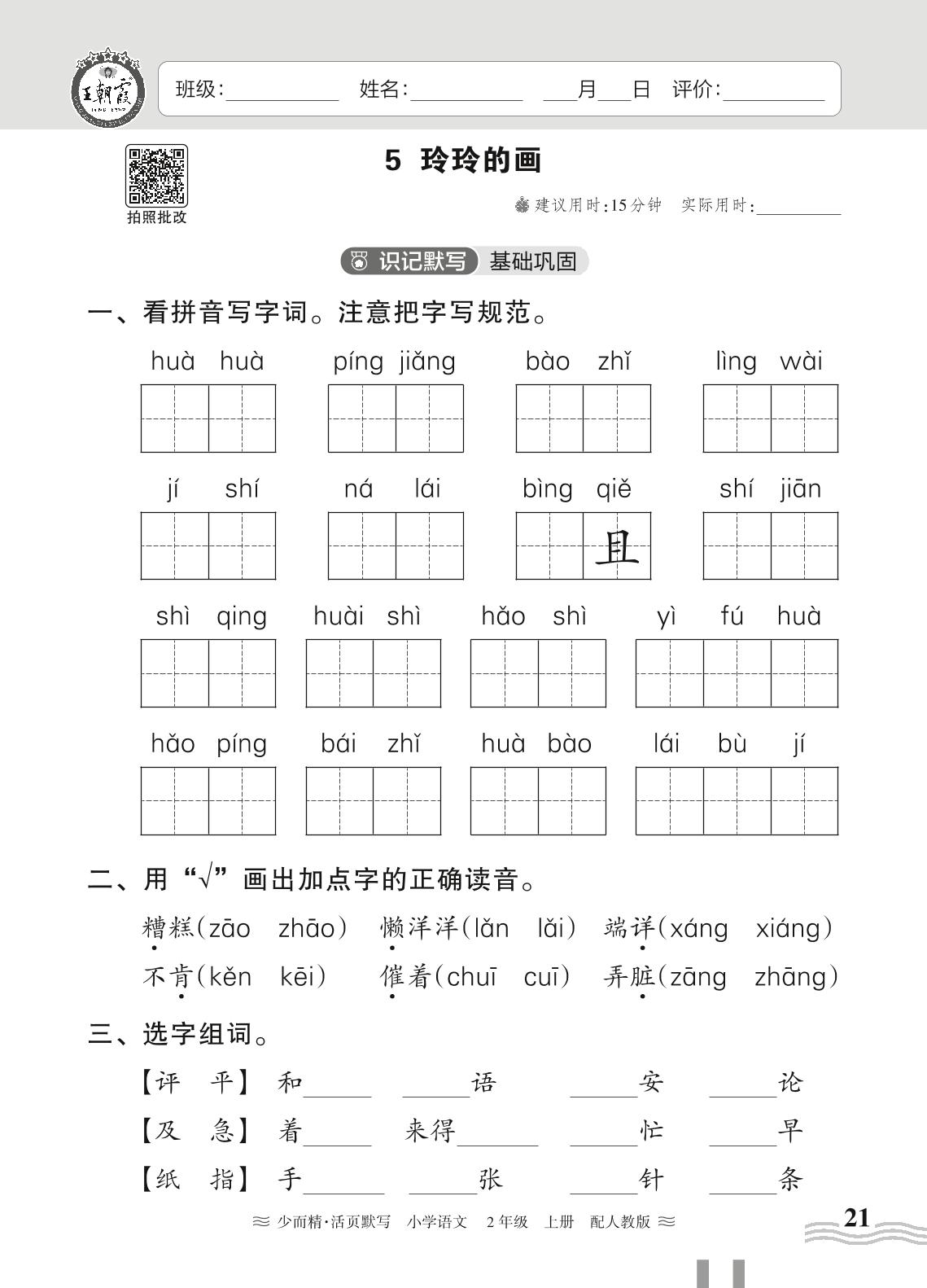 2024秋上册二年级语文人教版 第三单元——5. 玲玲的画