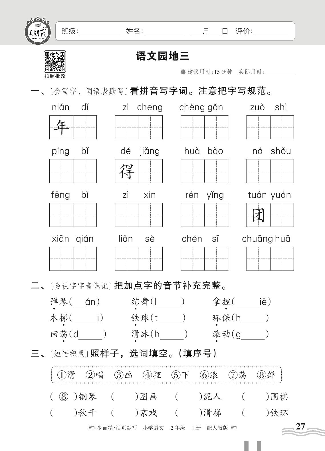 2024秋上册二年级语文人教版 第三单元——语文园地三