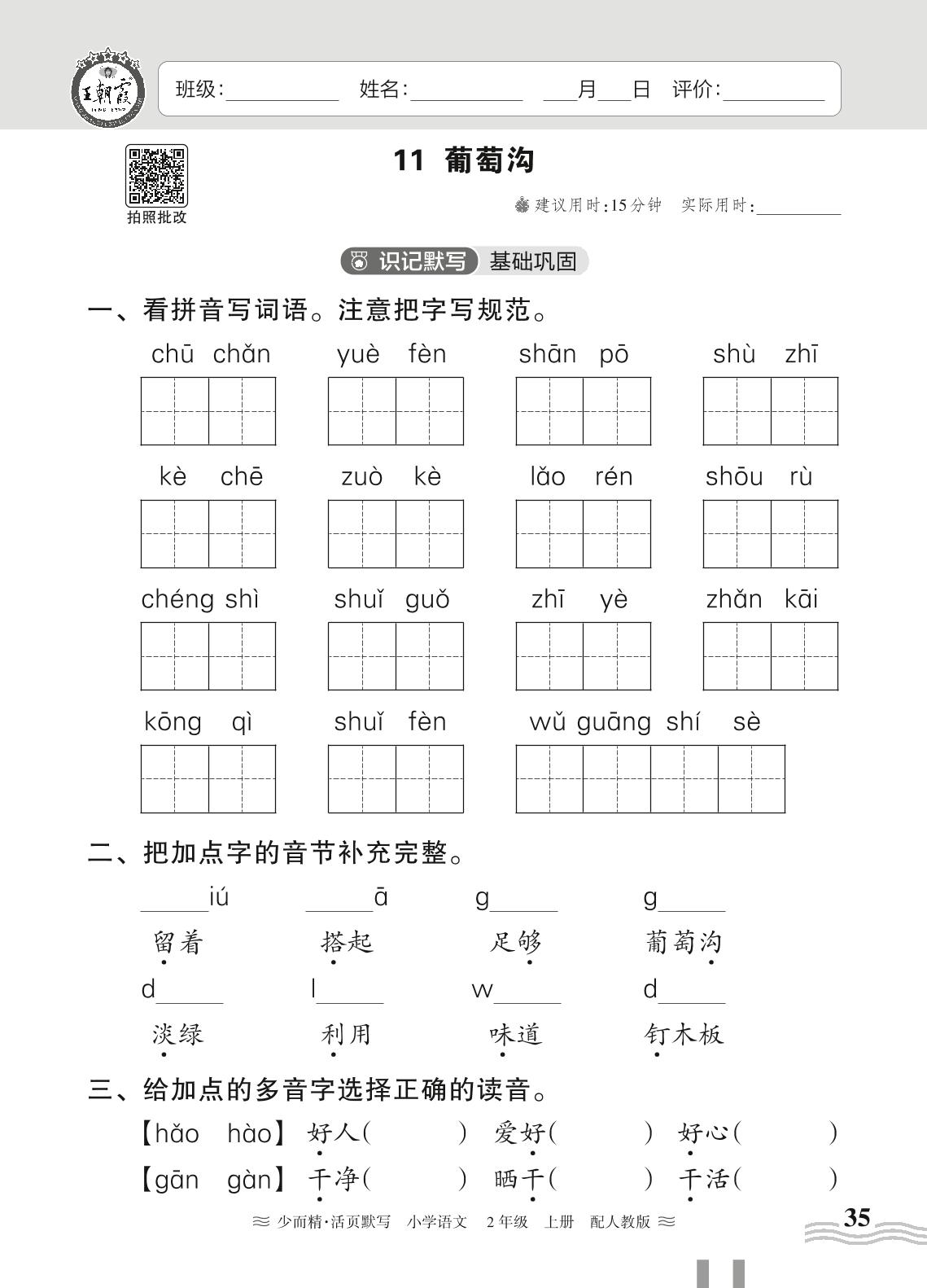 二年级语文人教版上册课时作业
