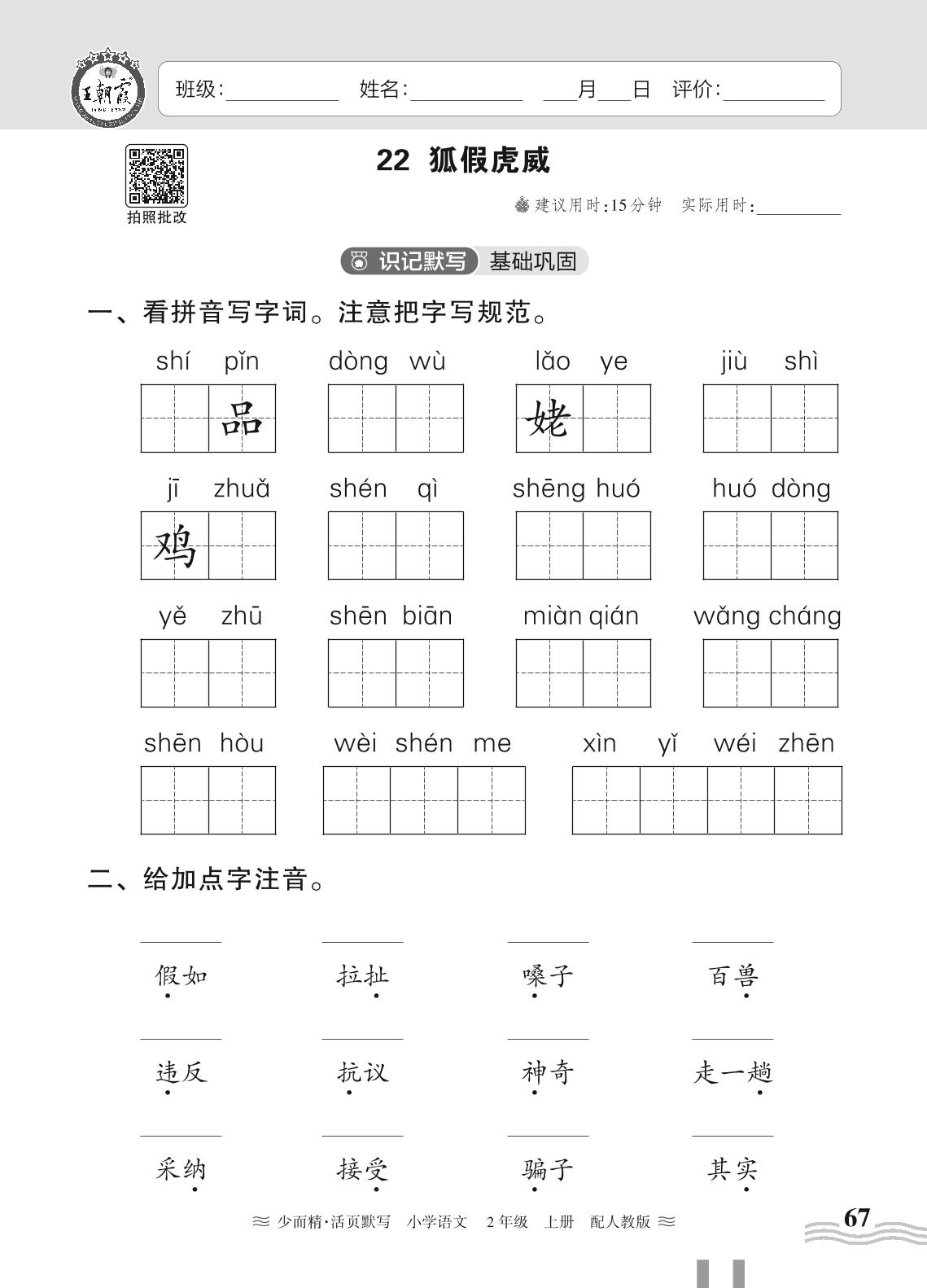 2024秋上册二年级语文人教版 第八单元——22. 狐假虎威