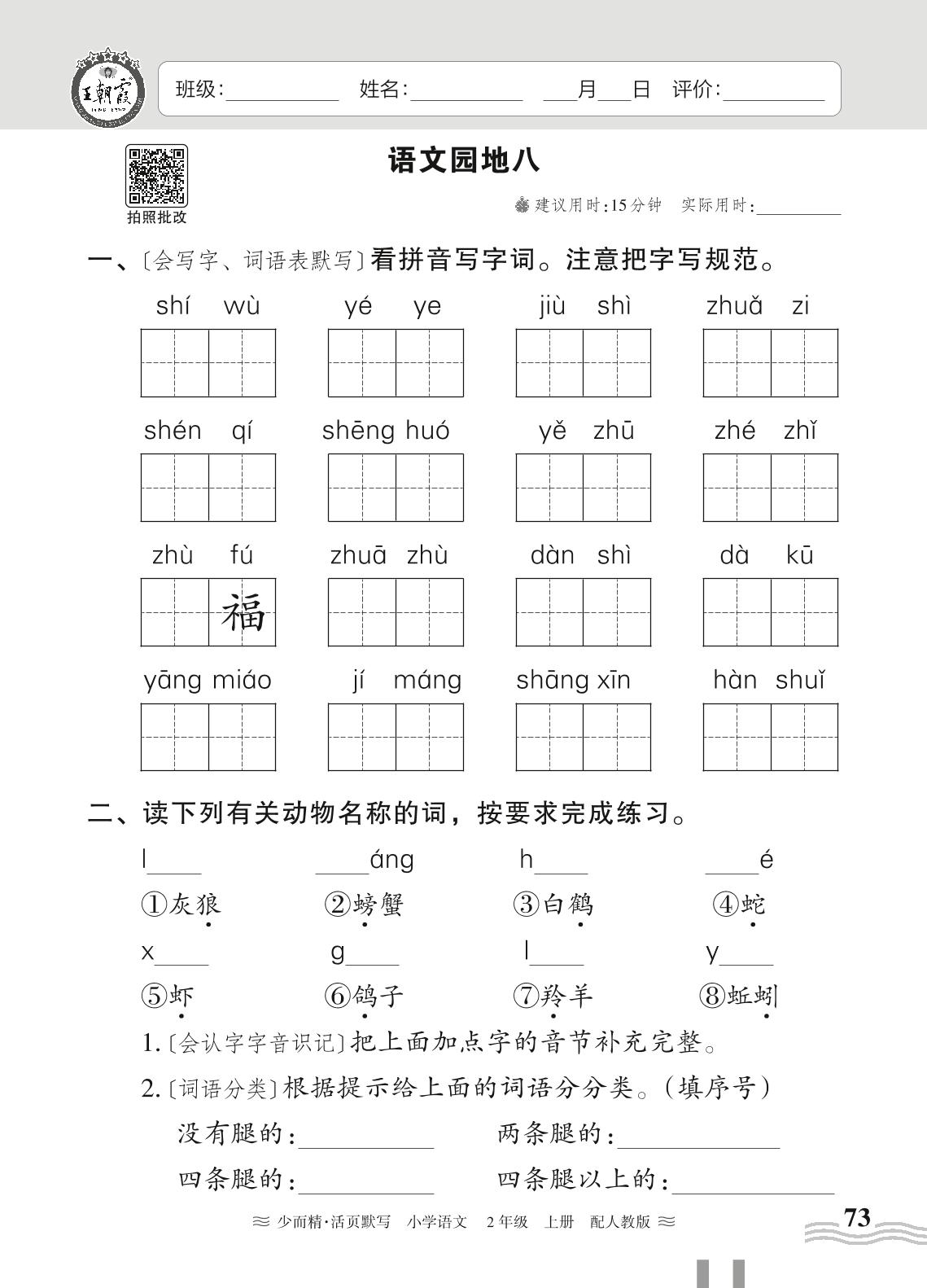 2024秋上册二年级语文人教版 第八单元——语文园地八