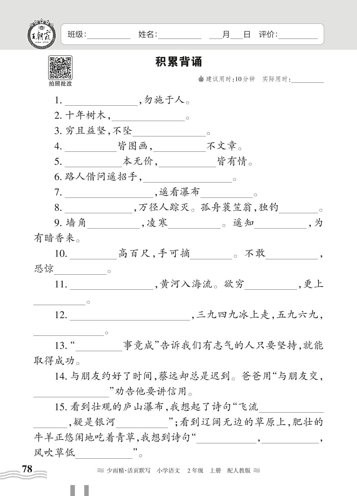 2024秋上册二年级语文人教版 期末专项练习——积累背诵