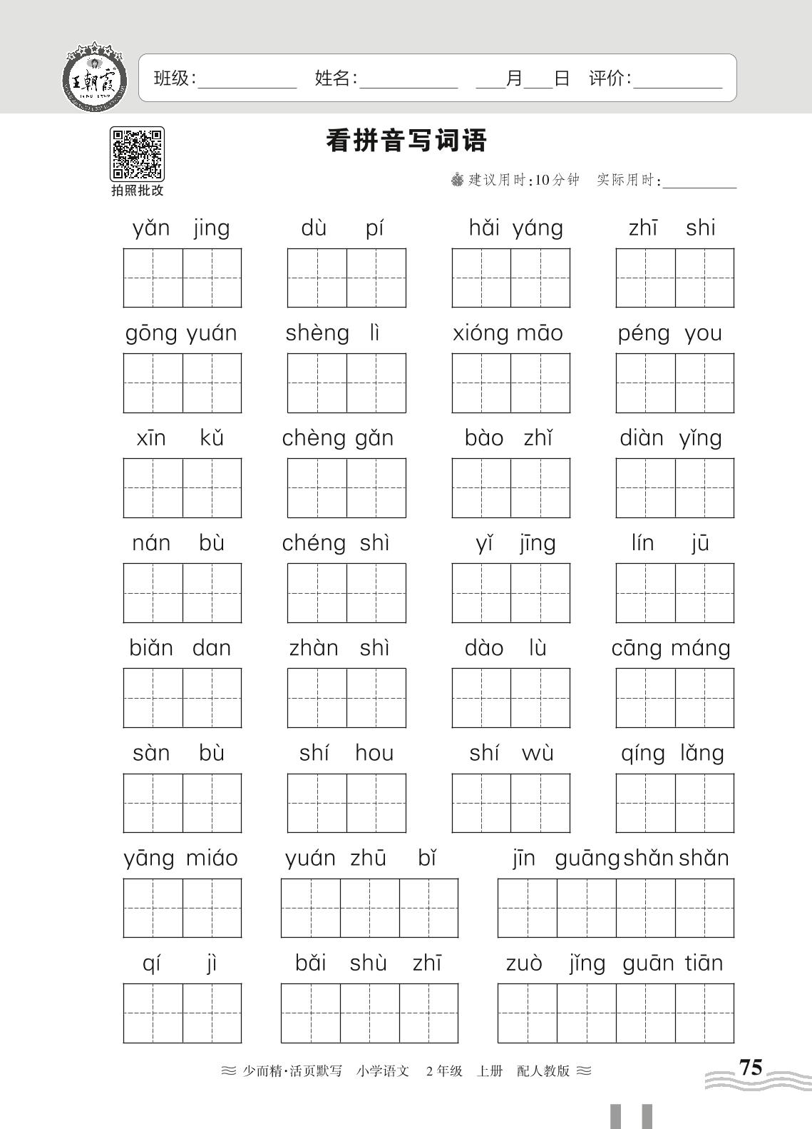 2024秋上册二年级语文人教版 期末专项练习——看拼音写词语