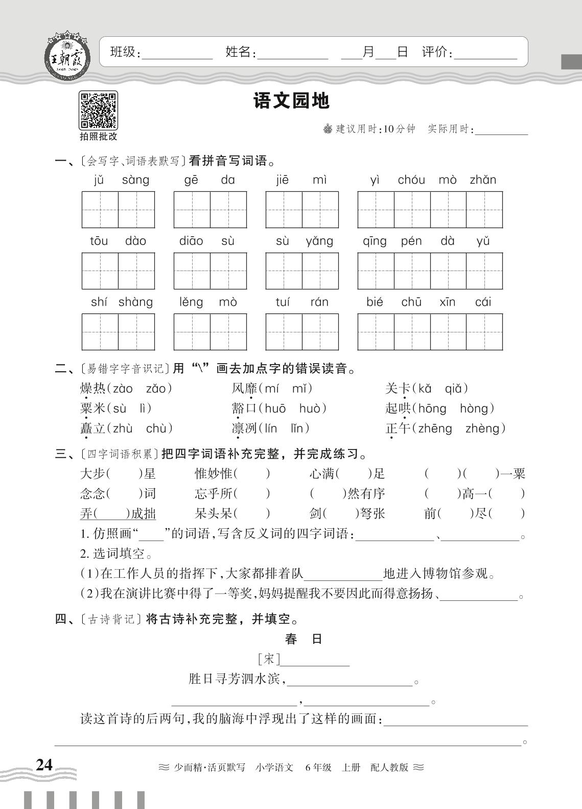 2024秋上册六年级语文人教版 第三单元——语文园地