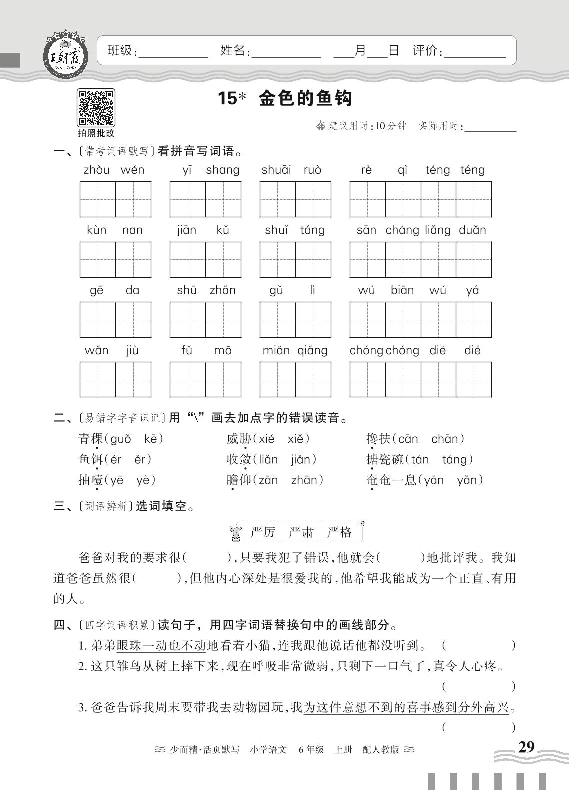2024秋上册六年级语文人教版 第四单元——15. 金色的鱼钩