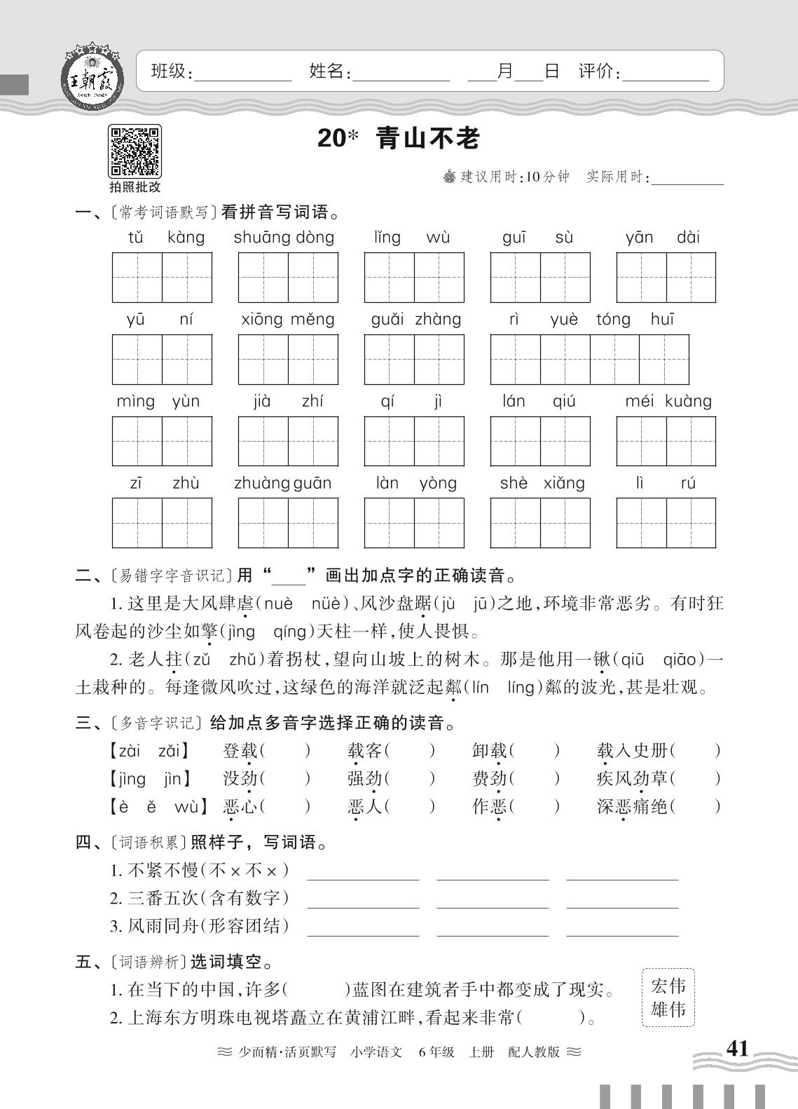 2024秋上册六年级语文人教版 第六单元——20. 青山不老