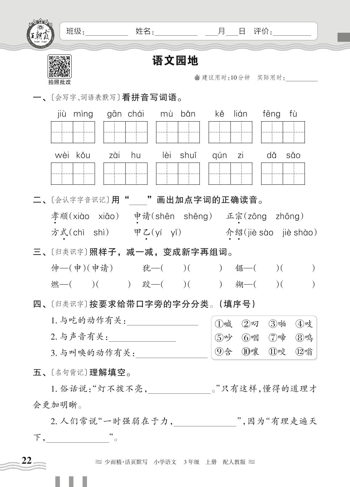 2024秋上册三年级语文人教版 第三单元——语文园地