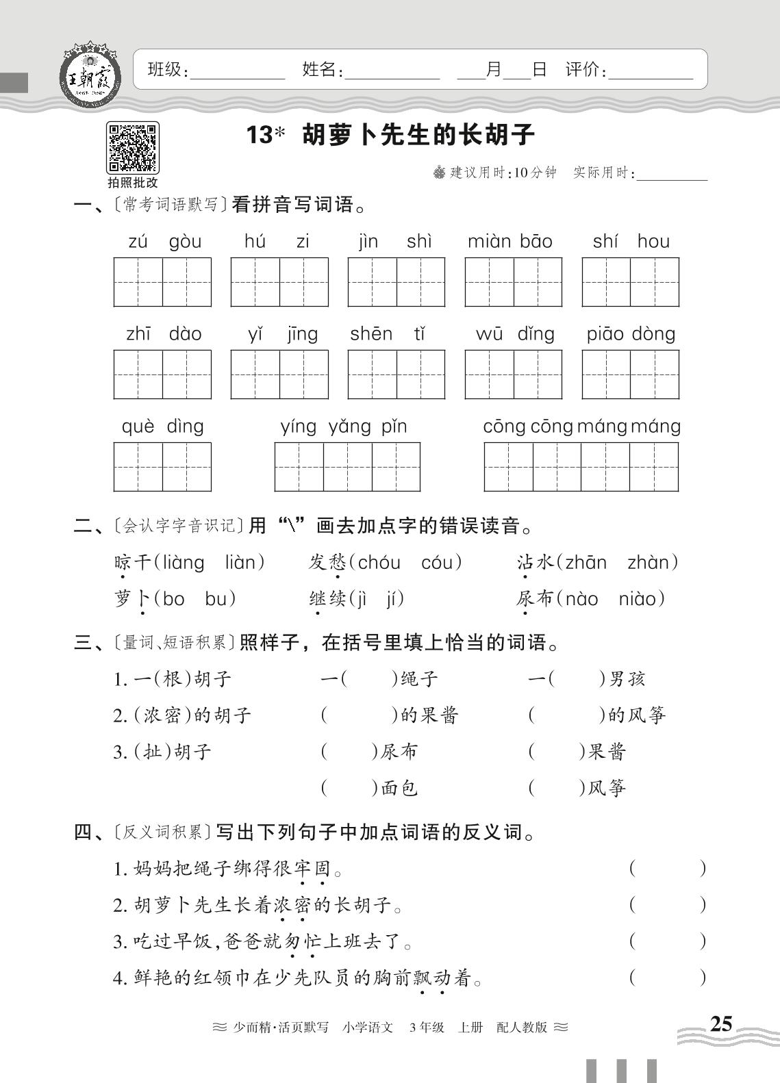 2024秋上册三年级语文人教版 第四单元——13. 胡萝卜先生的长胡子