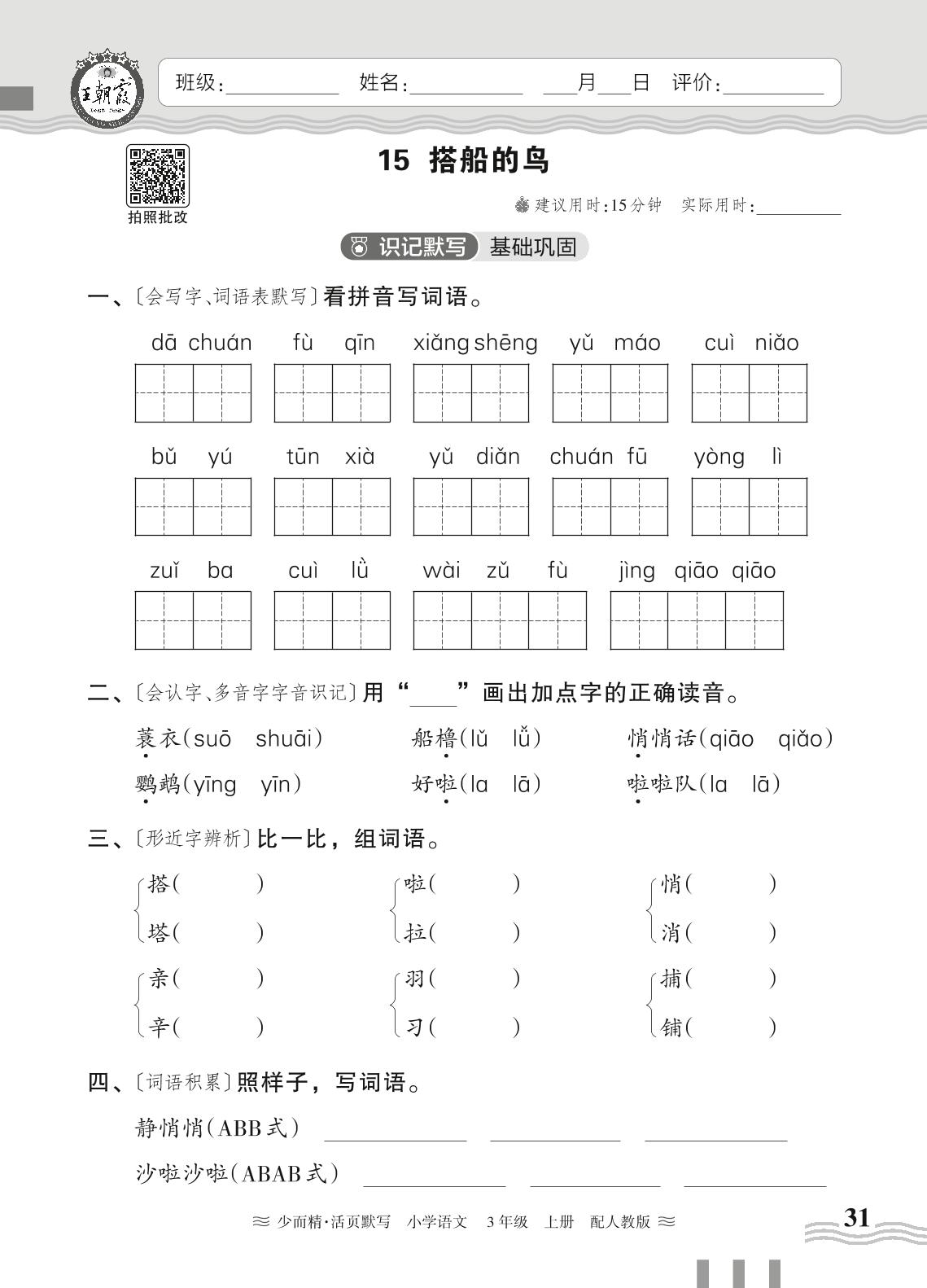2024秋上册三年级语文人教版 第五单元——15. 搭船的鸟