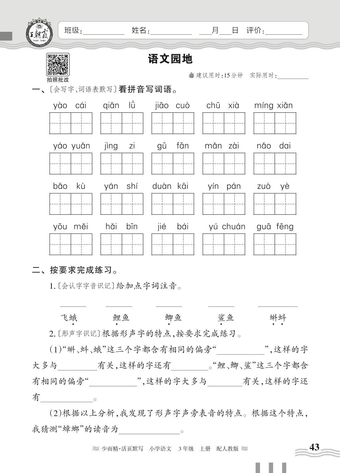 2024秋上册三年级语文人教版 第六单元——语文园地