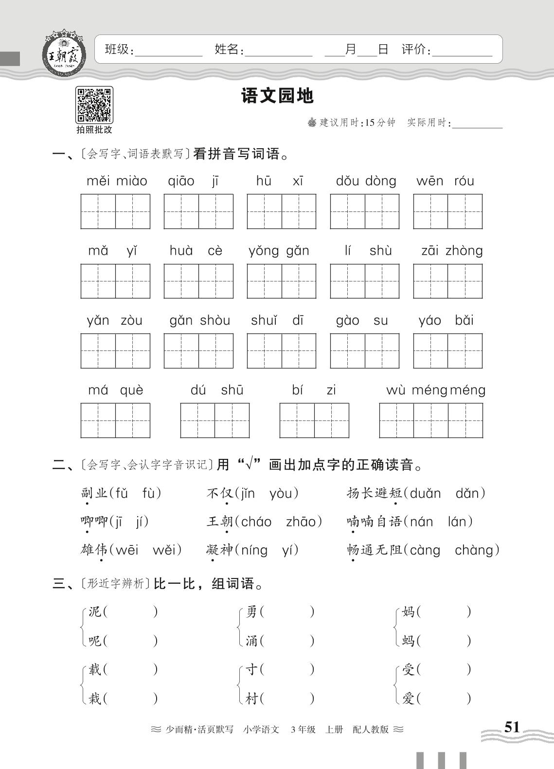 三年级语文人教版上册课时作业