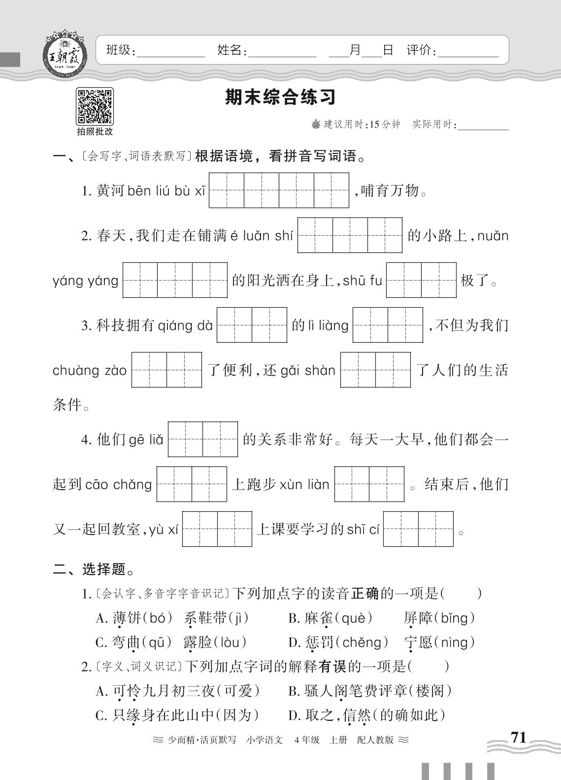 四年级语文人教版上册专项卷