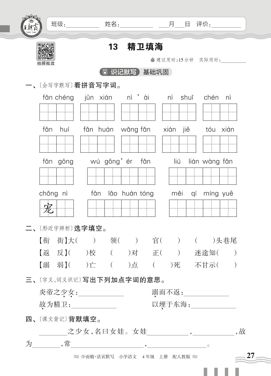 2024秋上册四年级语文人教版 第四单元——13. 精卫填海