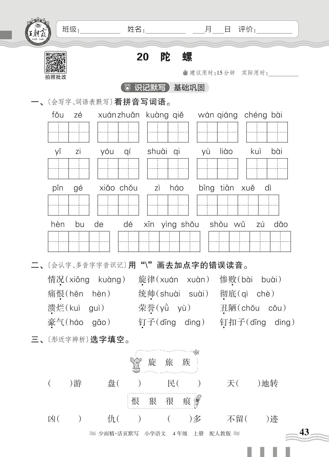 2024秋上册四年级语文人教版 第六单元——20. 陀螺