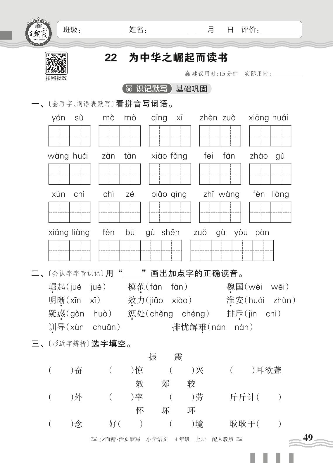2024秋上册四年级语文人教版 第七单元——22. 为中华之崛起而读书