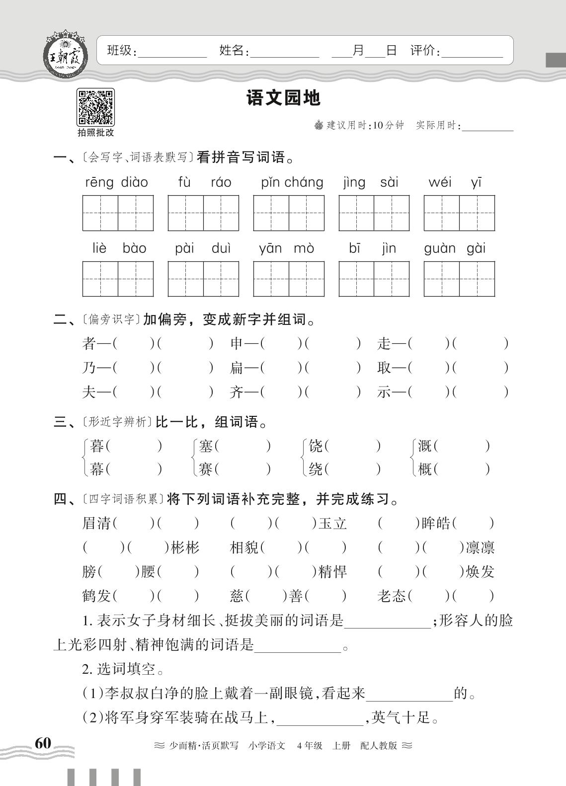 2024秋上册四年级语文人教版 第八单元——语文园地