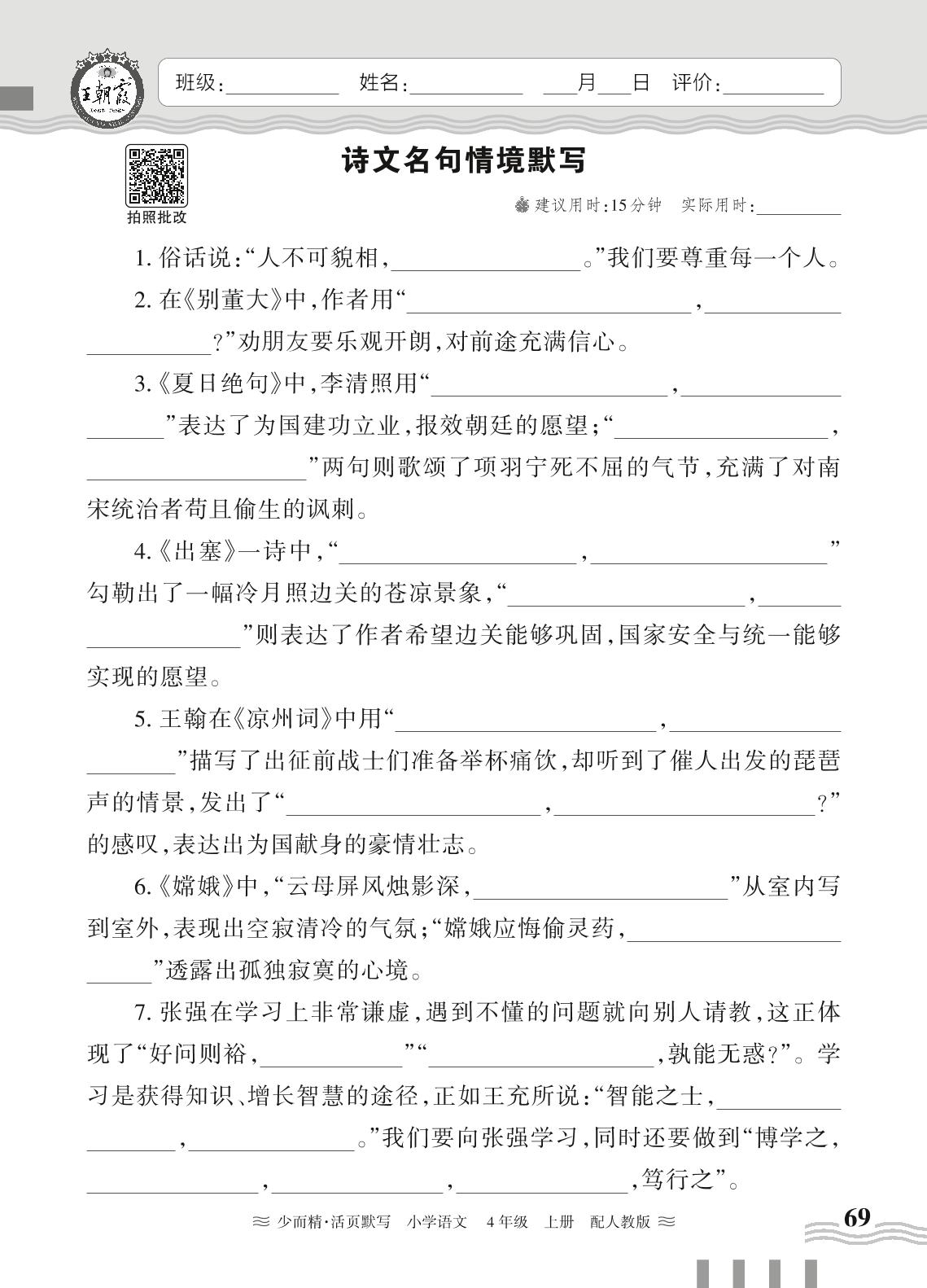2024秋上册四年级语文人教版 期末专项练习——诗文名句情境默写