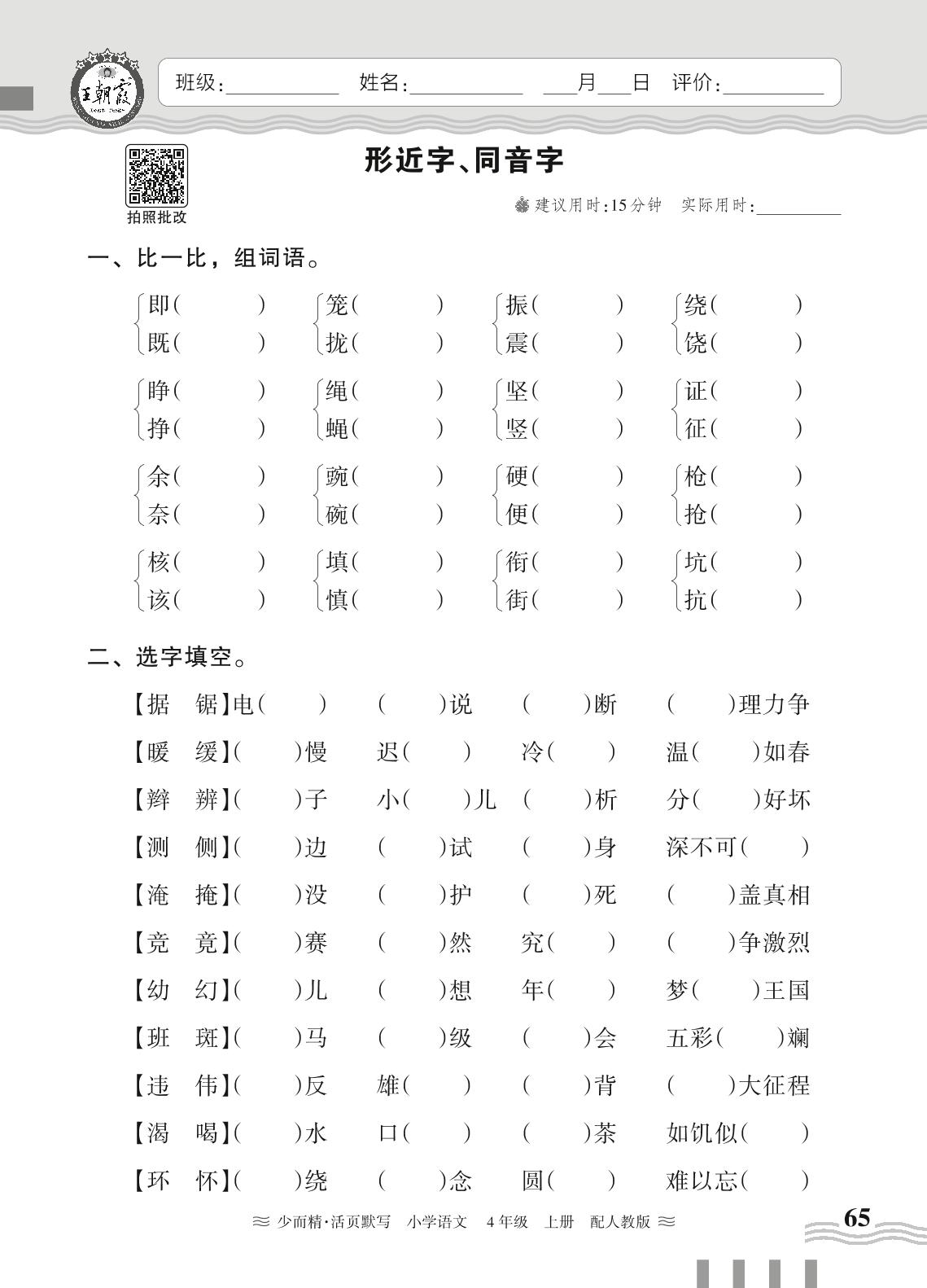 2024秋上册四年级语文人教版 期末专项练习——形近字、同音字