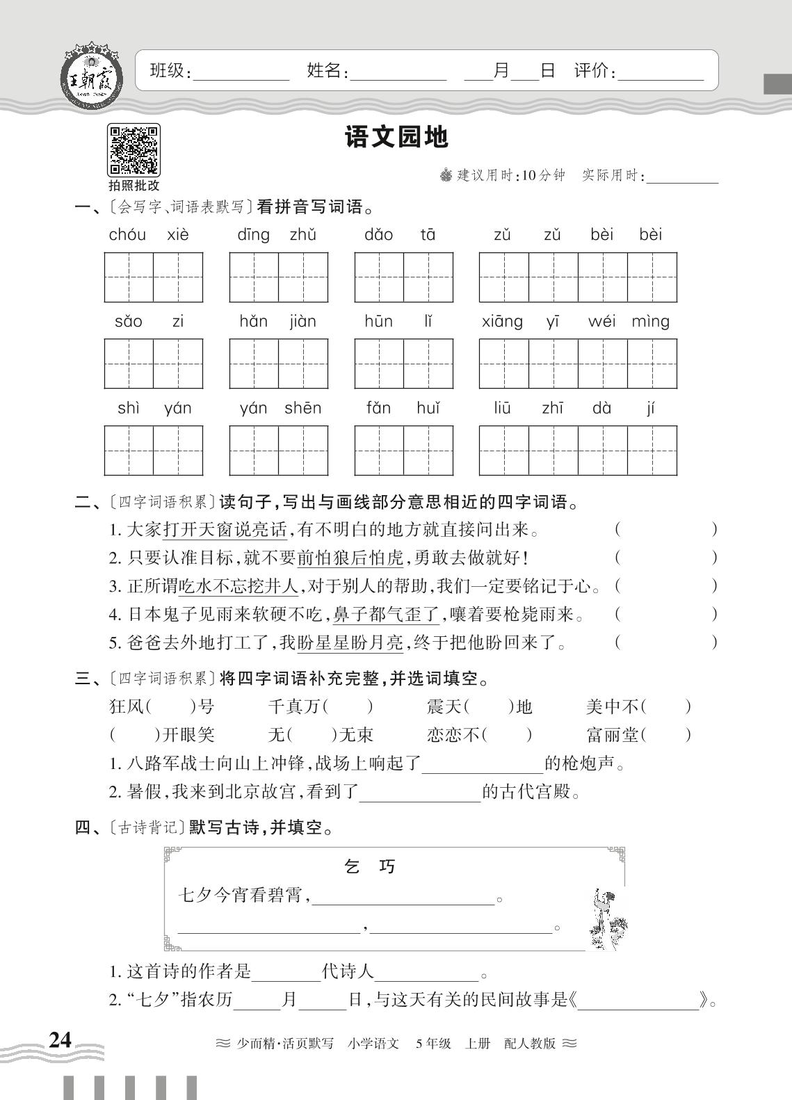 2024秋上册五年级语文人教版 第三单元——语文园地