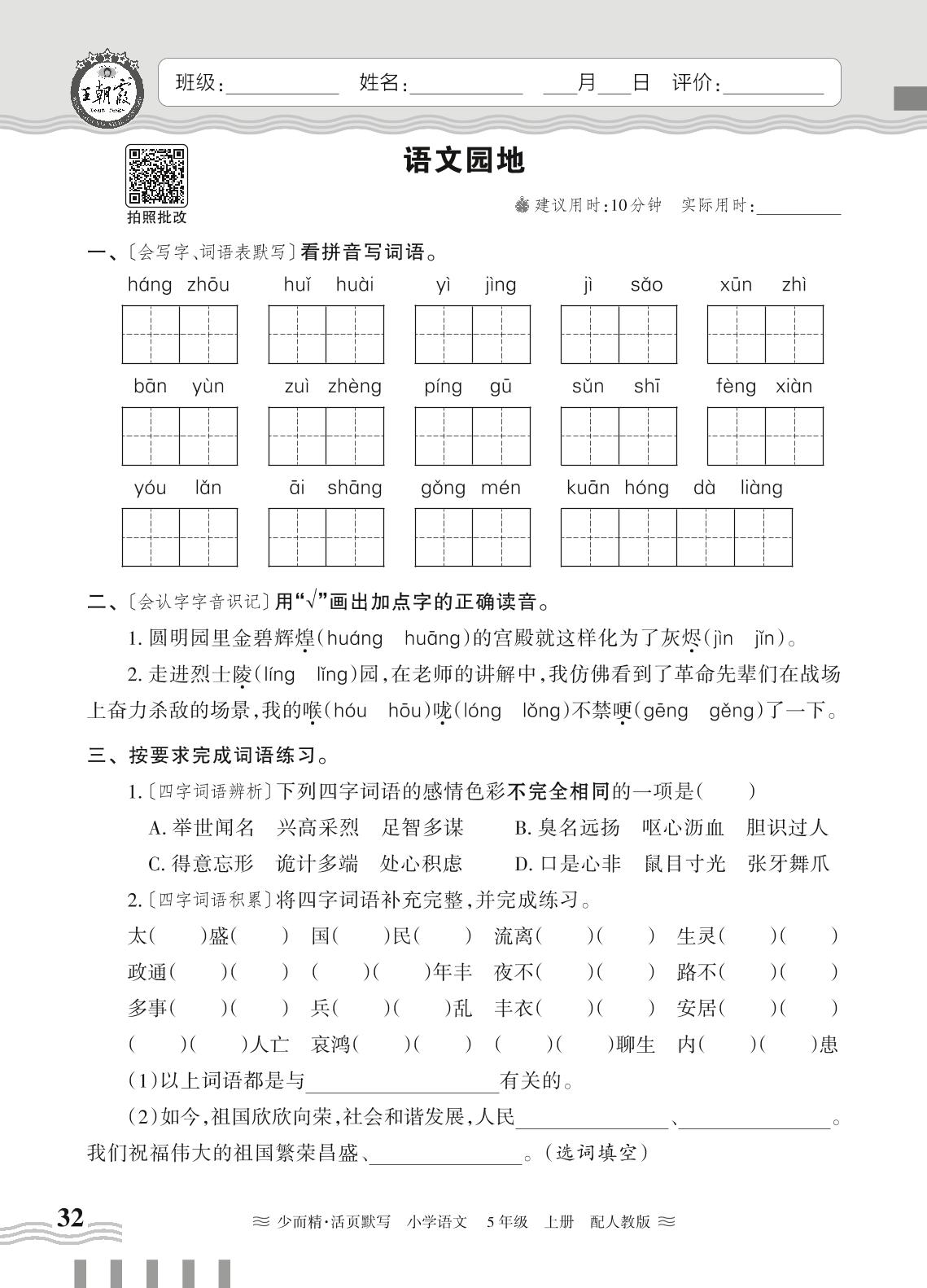 2024秋上册五年级语文人教版 第四单元——语文园地