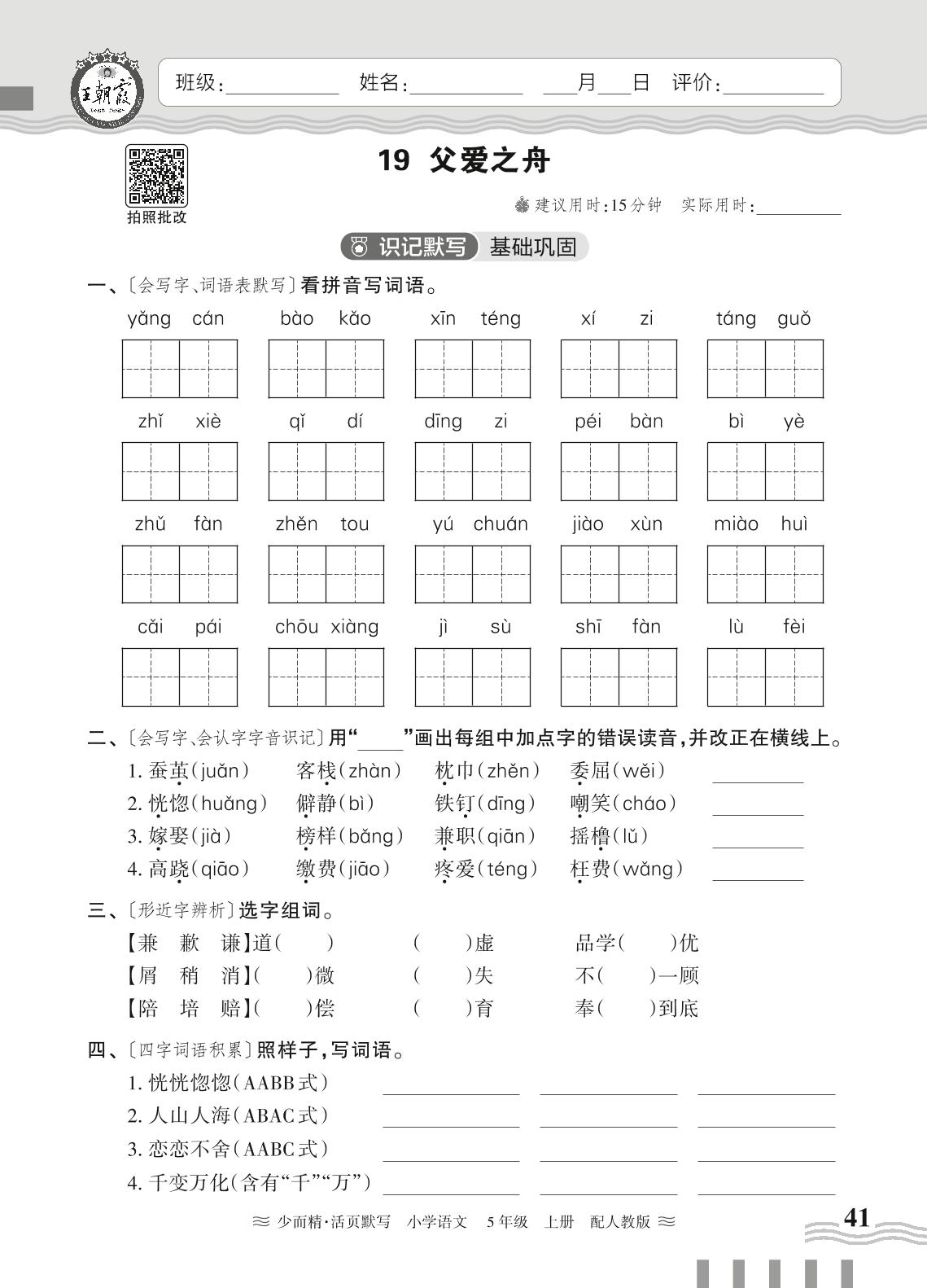 2024秋上册五年级语文人教版 第六单元——19. 父爱之舟