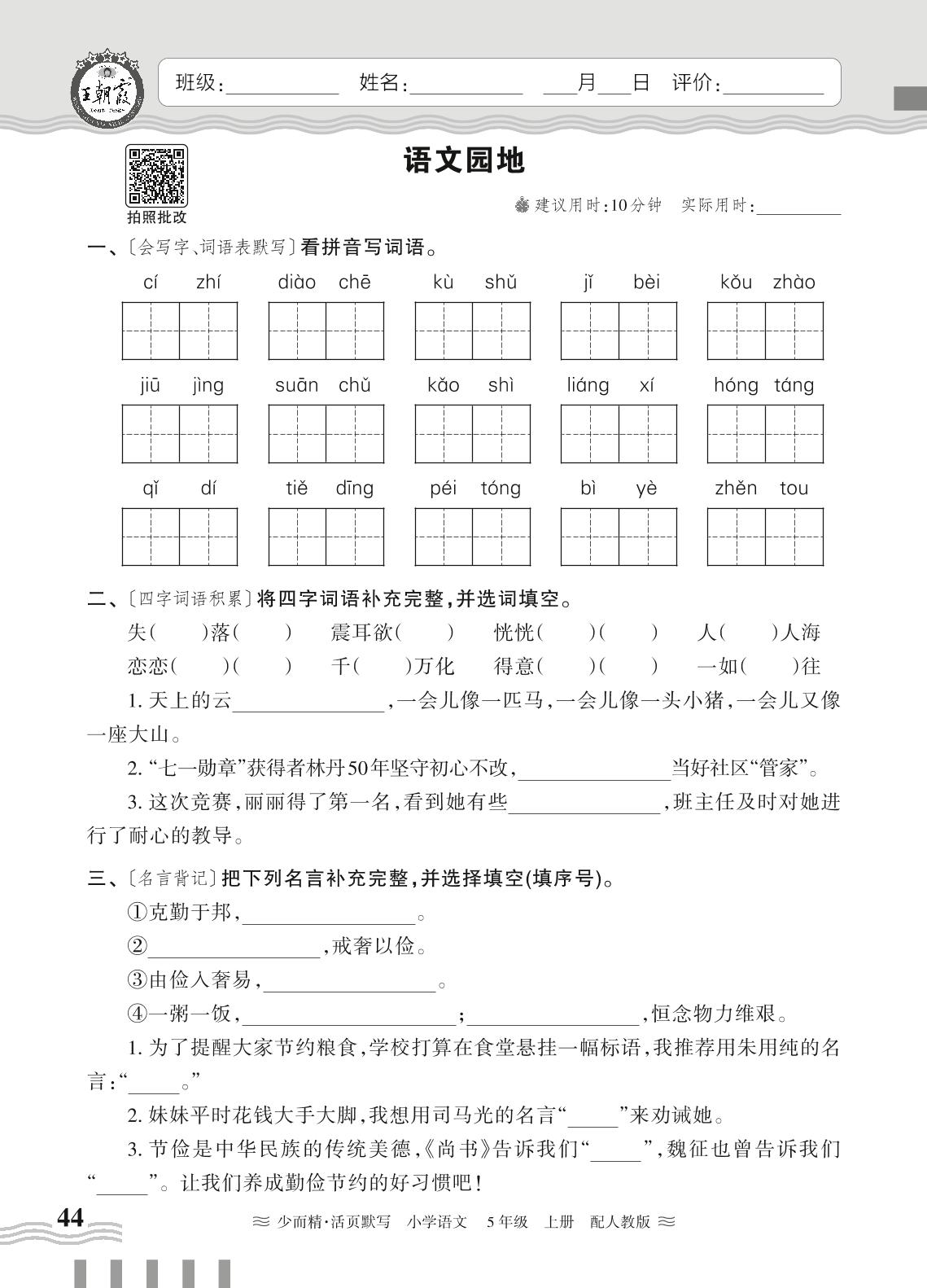 2024秋上册五年级语文人教版 第六单元——语文园地