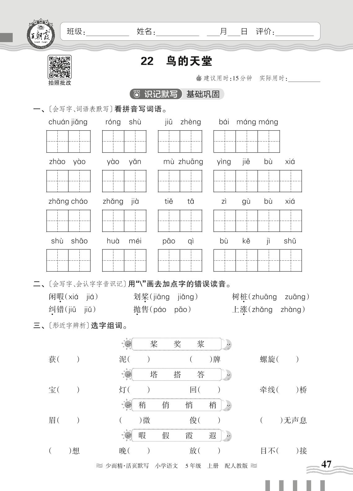 2024秋上册五年级语文人教版 第七单元——22. 鸟的天堂