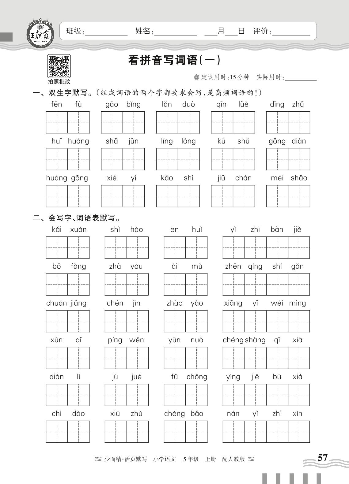 2024秋上册五年级语文人教版 期末专项练习——看拼音写词语(一)