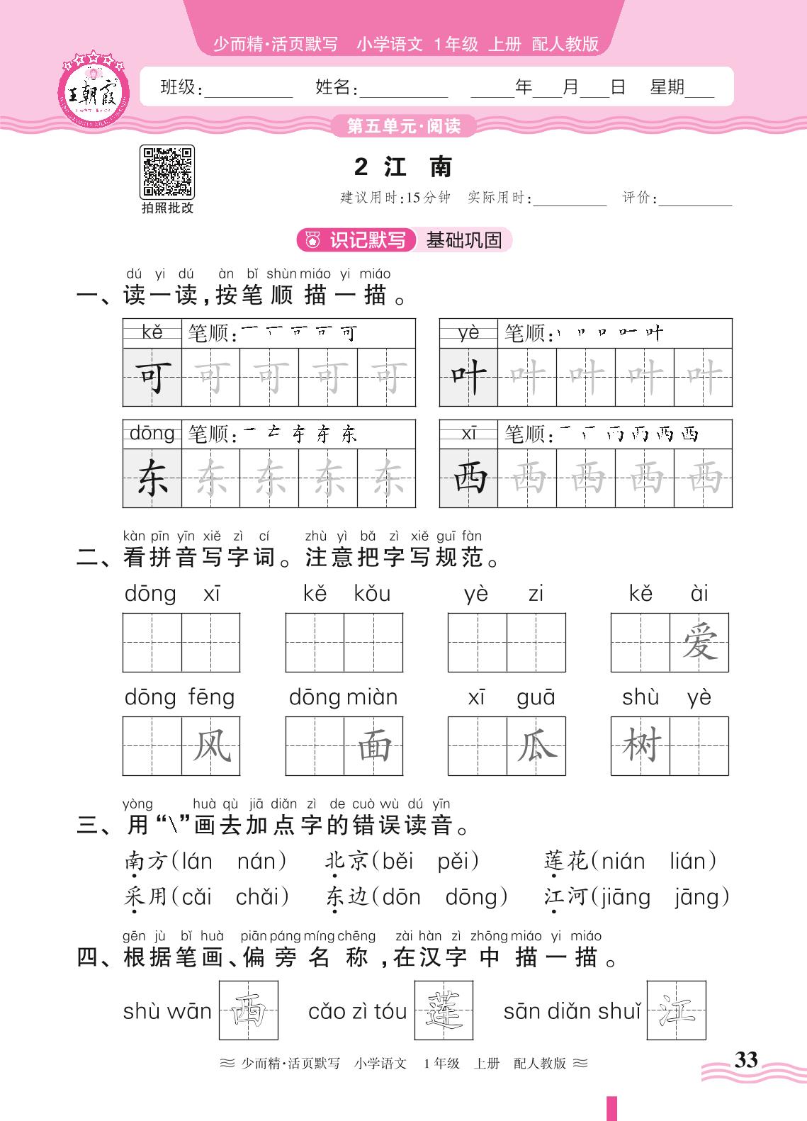 2024秋上册一年级语文人教版 第五单元 阅读——2. 江南_R240820152615664
