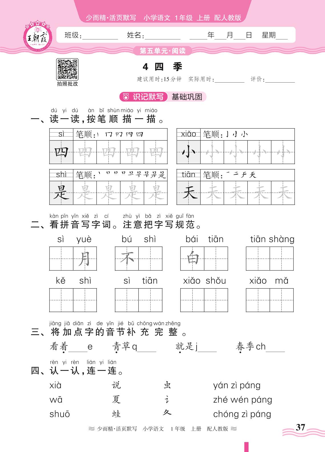 2024秋上册一年级语文人教版 第五单元 阅读——4. 四季_R240820152616337