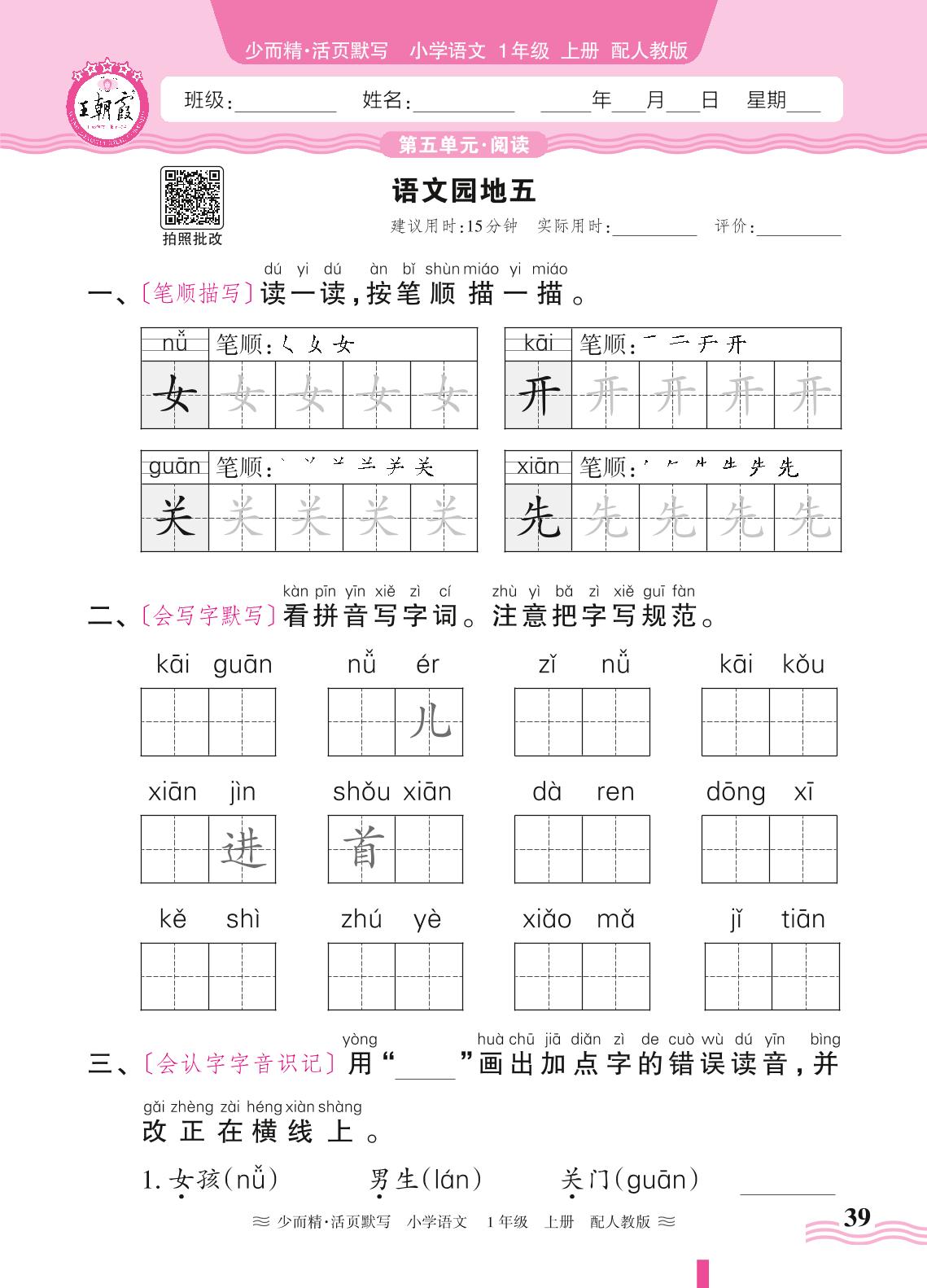 2024秋上册一年级语文人教版 第五单元 阅读——语文园地五_R240820152616993
