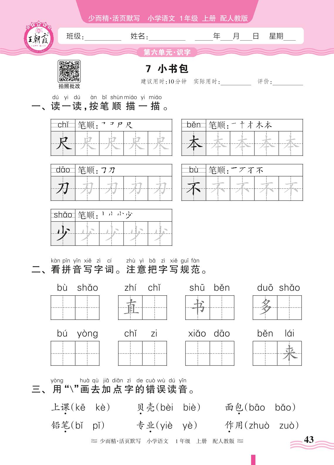 2024秋上册一年级语文人教版 第六单元 识字——7. 小书包_R240820152617067