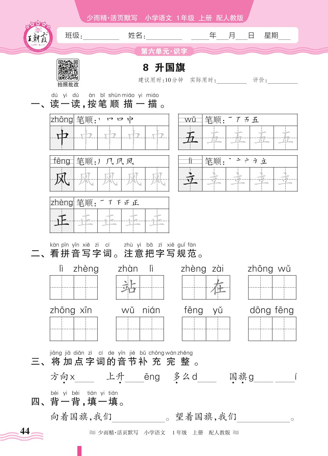 2024秋上册一年级语文人教版 第六单元 识字——8. 升国旗_R240820152618452