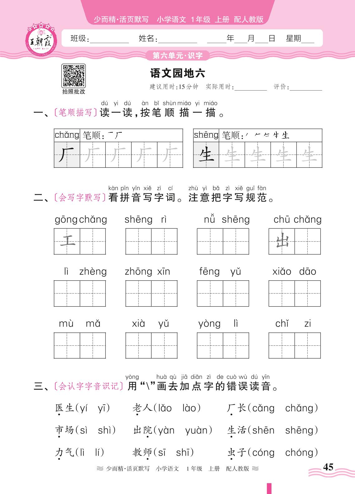 2024秋上册一年级语文人教版 第六单元 识字——语文园地六_R240820152618354
