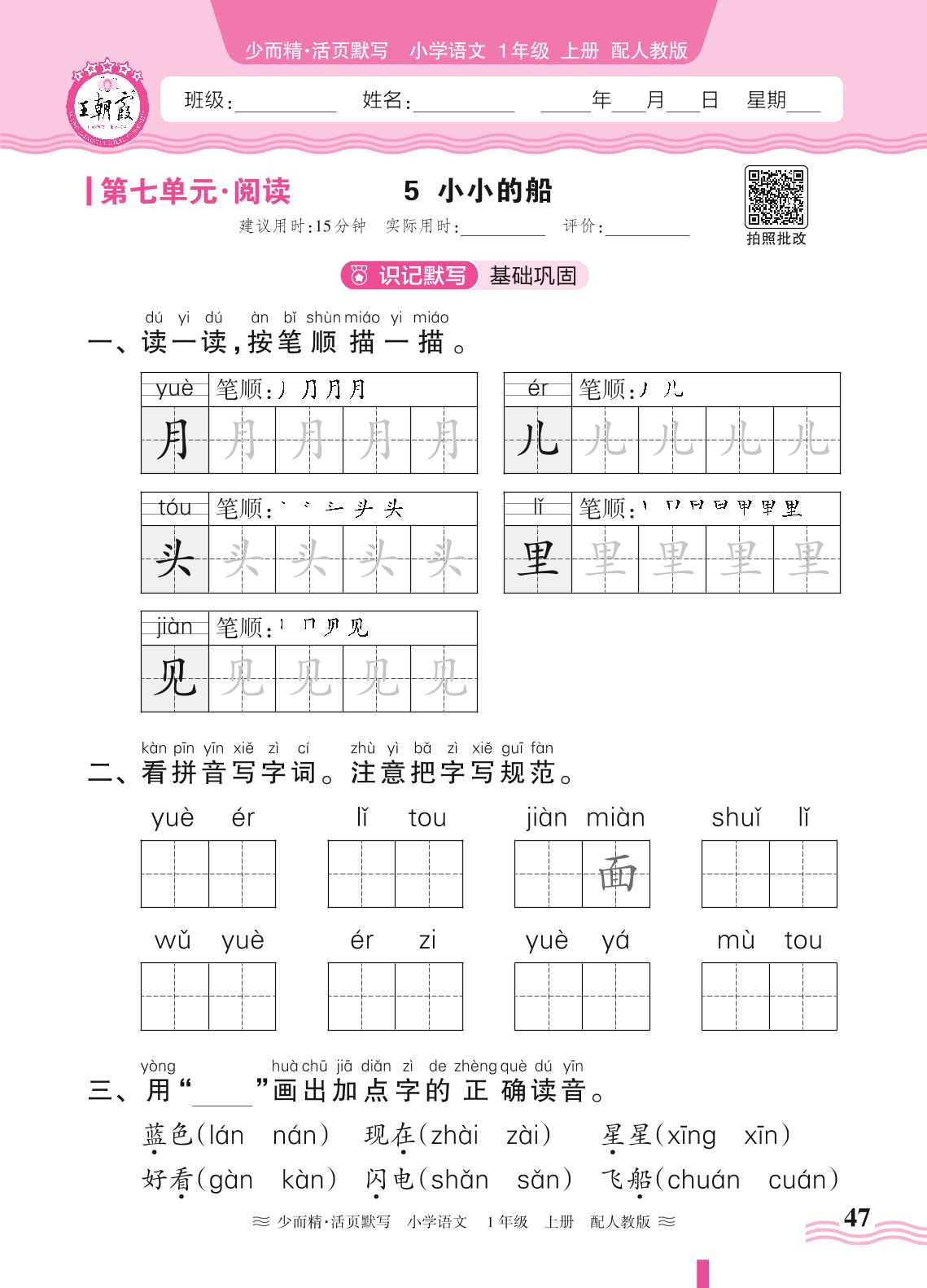 2024秋上册一年级语文人教版 第七单元 阅读——5. 小小的船_R240820152618081