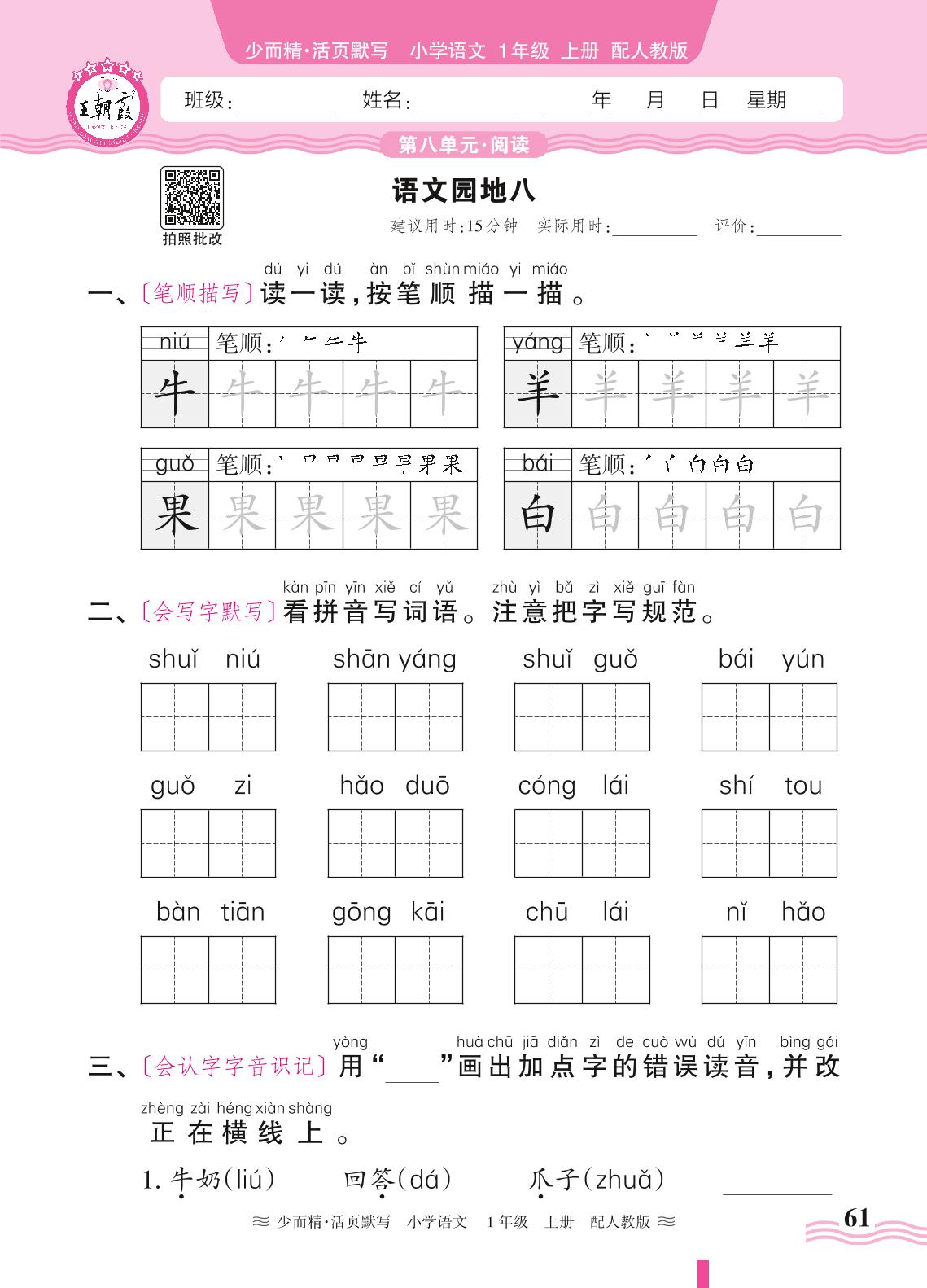 2024秋上册一年级语文人教版 第八单元 阅读——语文园地八_R240820152621143