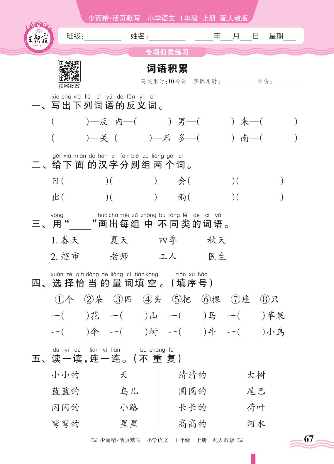 2024秋上册一年级语文人教版 专项归类练习——词语积累