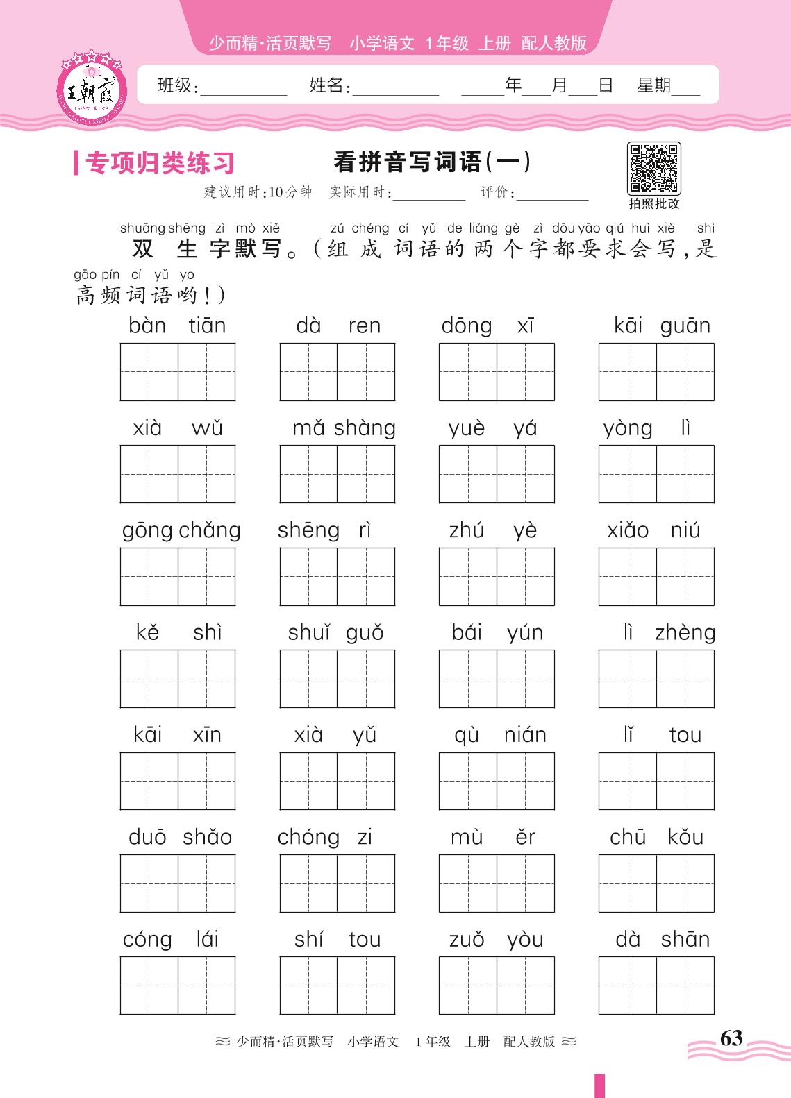 2024秋上册一年级语文人教版 专项归类练习——看拼音写词语(一)