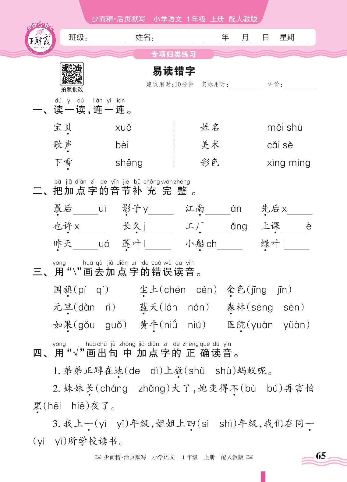 2024秋上册一年级语文人教版 专项归类练习——易读错字