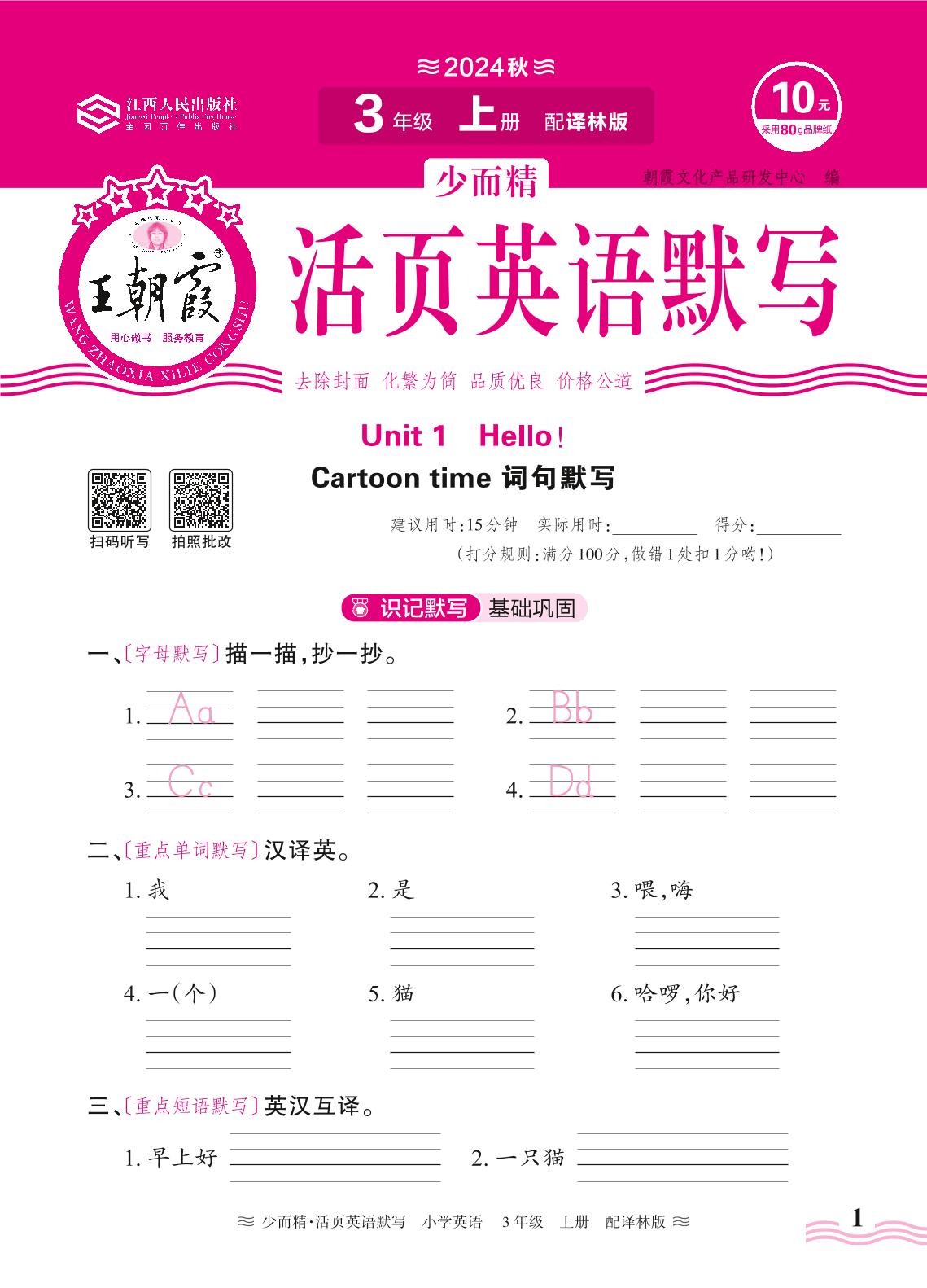 2024秋上册三年级英语译林版(三起始) Unit 1 Cartoon time词句默写