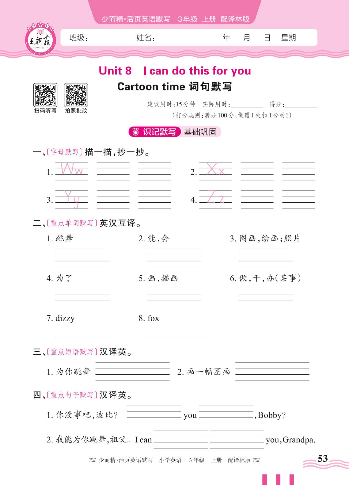 2024秋上册三年级英语译林版(三起始) Unit 8 Cartoon time词句默写