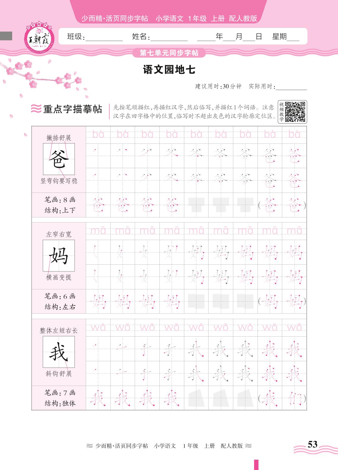 2024秋上册一年级语文人教版 第七单元同步字帖——语文园地七